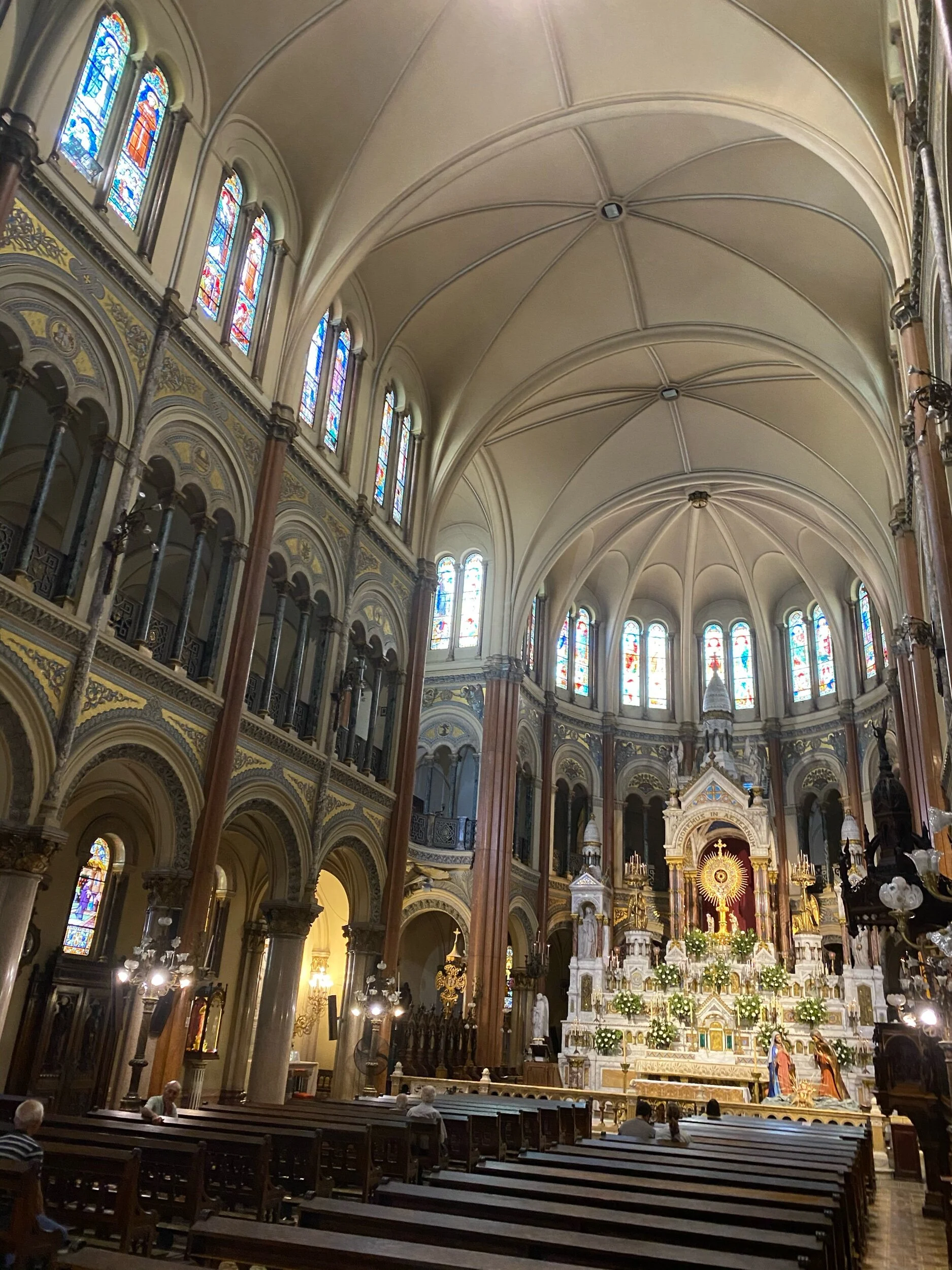 Next, we visit the church Basilica del Santismo Sacremento (Church of the Blessed Sacrement) which was built in the early 1900s and consecrated in 1915. It has a stunning and quite large and imposing altar display decorated with flowers and candles presumably for the recent Christmas celebration. The great custody inside the church is remarkable as it presents the Eucharist in the center of a grand white marble shrine. The church has a great organ which has 4,983 sound tubes and was manufactured in Paris. There are some people already there for adoration of the Blessed Sacrament and liturgical celebration.