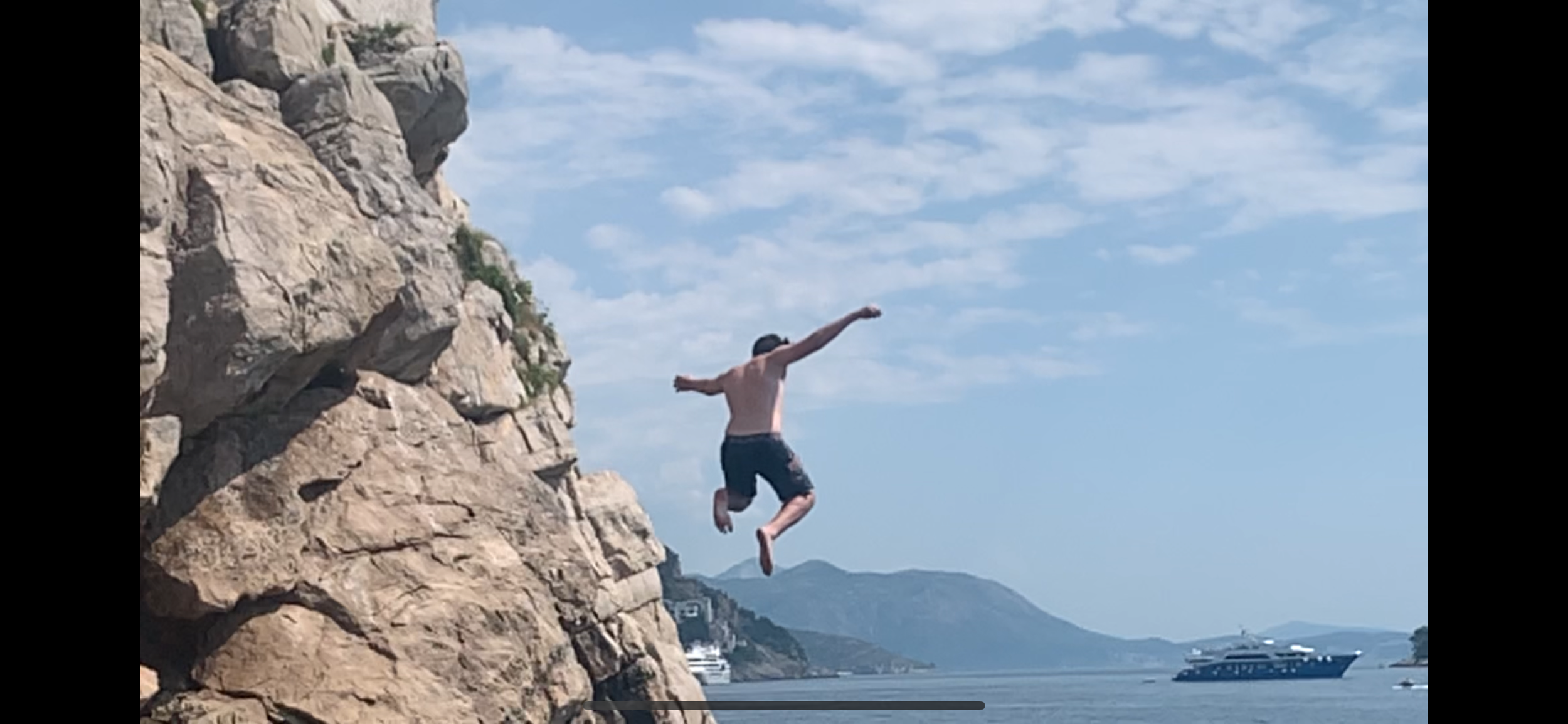 We head back down the original easy path and stairs to our cove. When we reach the bottom, there is the path to the other cove – no bushes, no prickers, no poison oak. An easy ten minute walk later, we arrive on the pebble beach of the cove. I tear into the water and within minutes have located it. There submerged about 3-4 feet below the water is about 10 meters of an ancient Roman wall. This is no renovated, replicated wall but the actual thing from some two thousand years ago. This is what we were foraging through the wrong path looking for. In the end, totally worth it and made unintentionally staying in an Airbnb 30 mins away the best possible outcome. I’m walking on the Roman wall, doing handstands on the wall, cartwheeling down the wall. Where else on Earth could this be possible? The Airbnb rating has been resurrected from 3 stars back to 5 stars.