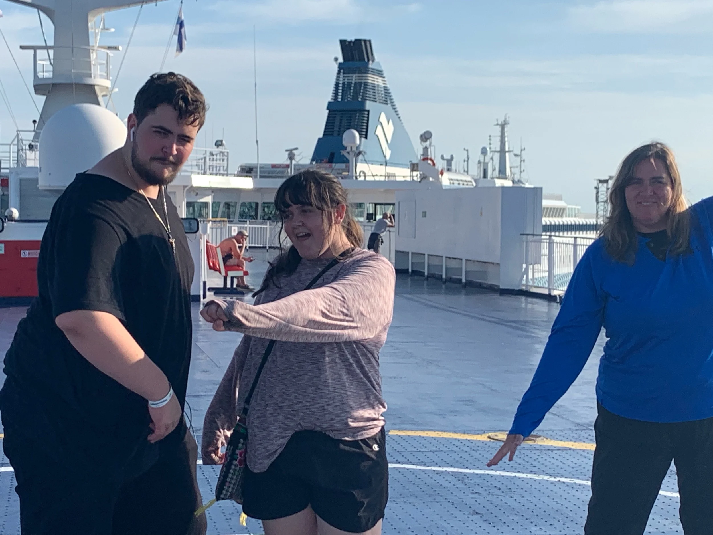 The teens leave us to enjoy the sunset on the top deck but their empty chairs become a friend-making opportunity.